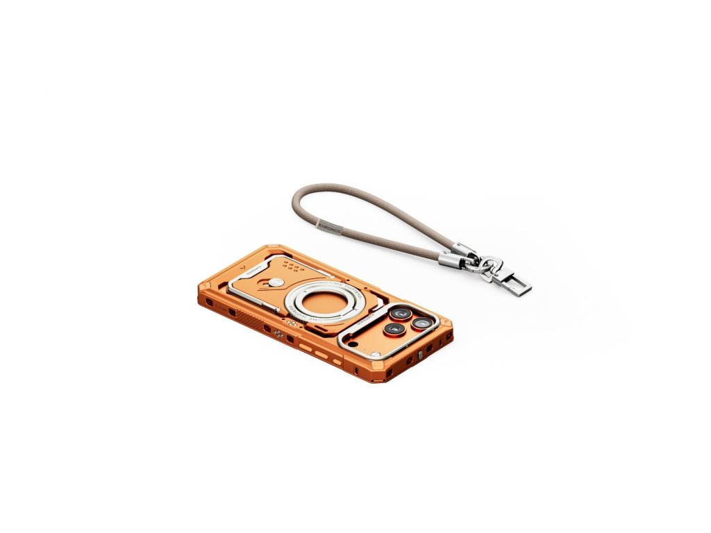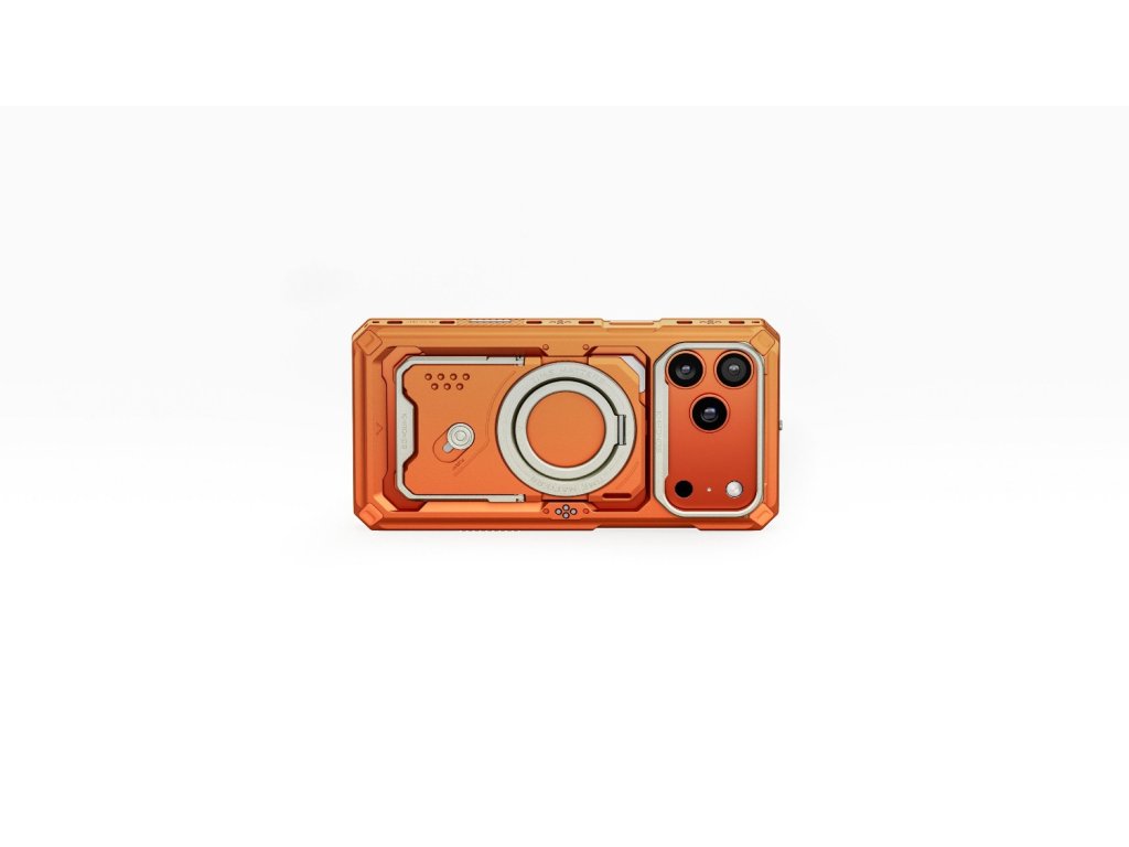 PaginăHusa Tilta Khronos pentru iPhone 17 Pro MaxÎn portocaliu, este fundamentul ecosistemului de filmare mobilă Khronos. Această husă de protecție pentru smartphone, inspirată de o cușcă, esteProiectat special pentru iPhone 17 Pro Maxși funcții șiDesign cu prindere rapidă și eliberare rapidă aDesign extensibilcu mai multe puncte de montare, inclusivClemă de blocaremecanism. În mod crucial, includePuncte de contact electronice integratepentru alimentarea directă a accesoriilor montate, cum ar fi mânerele și luminile Focus.