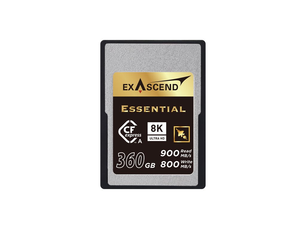 Optimizat pentru fotografie și cinematografie profesională, cardul de memorie CFexpress de tip A de la Seria Essential de 360 GB de la Exascend este certificat pentru video raw 8K și dispune de tehnologii brevetate care asigură o stabilitate ridicată fără căderi de cadre. Acest card CFexpress Type-A de 360 GB utilizează memorie flash 3D TLC și funcționează cu sisteme de camere compatibile, oferind viteze de citire secvențială de până la 900 MB/s și viteze de scriere secvențială de până la 800 MB/s prin interfața PCIe 3.0 / NVMe 1.4. De asemenea, este rezistent la șocuri, vibrații și magneți.
