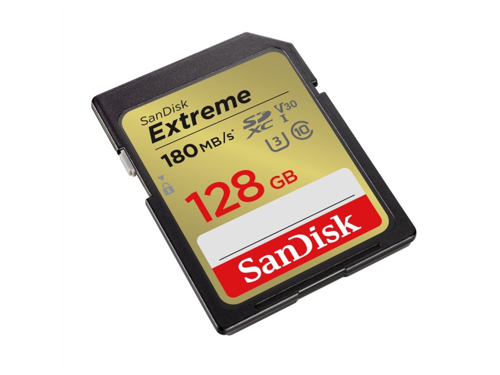 Card de memorie SDXC SanDisk Extreme 128 GB 180 MB/s și 90 MB/s, UHS-I, clasa 10, U3, V30