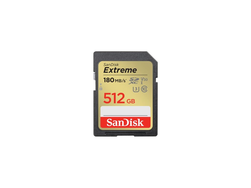 Card de memorie SDXC SanDisk Extreme 512 GB 180 MB/s și 130 MB/s, UHS-I, clasa 10, U3, V30