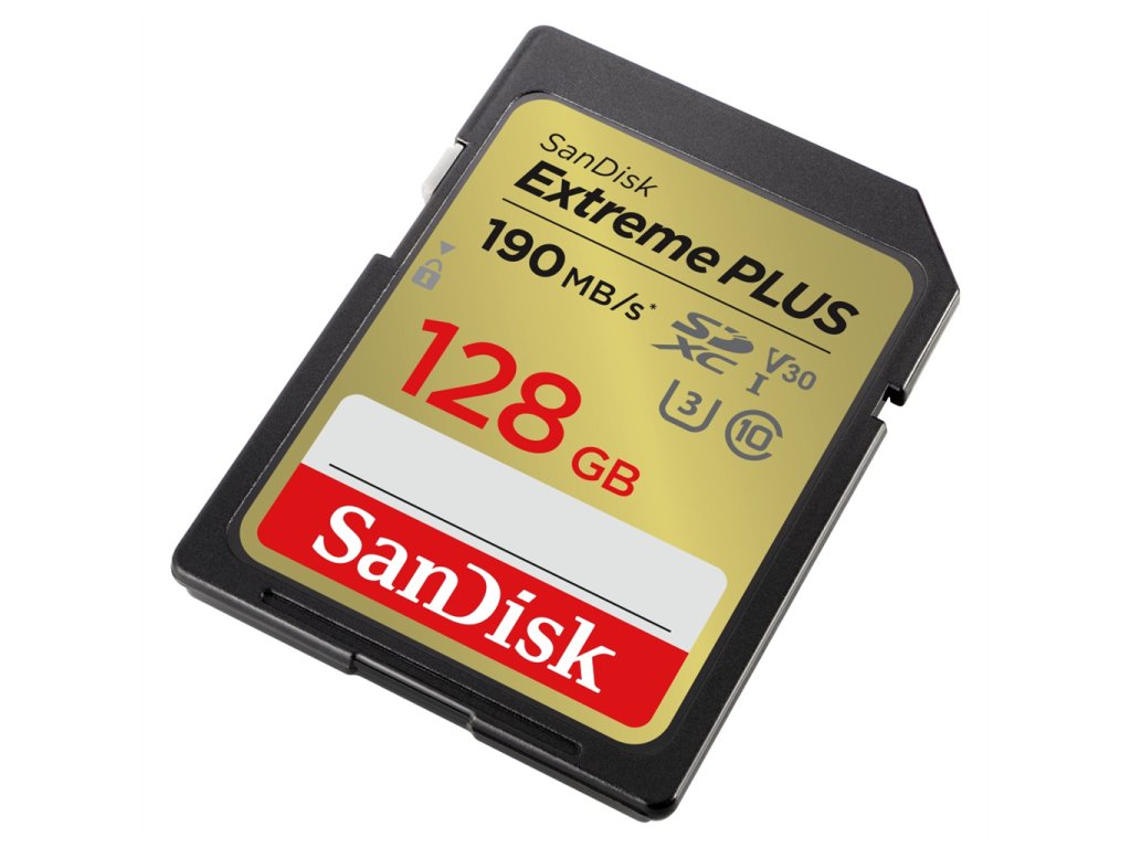 Card de memorie SDXC SanDisk Extreme PLUS 128 GB 190 MB/s și 90 MB/s, UHS-I, clasa 10, U3,...