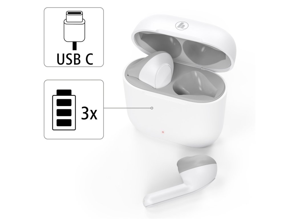 Căști Bluetooth Hama Freedom Light, cuburi, husă de încărcare, alb
