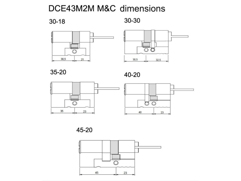 Cilindru modular M&C pentru Danalock V3, lungime internă 20 mm