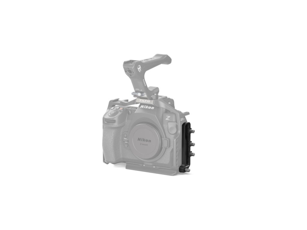 Această clemă modernă de cablu se integrează cu ușurință în cușca completă a camerei Nikon Z8 printr-un punct de atașare special care folosește un mic orificiu de montare în plus față de șurubul cu aripă pentru a atașa clema și pentru a preveni rotirea accesoriului în timpul utilizării.
