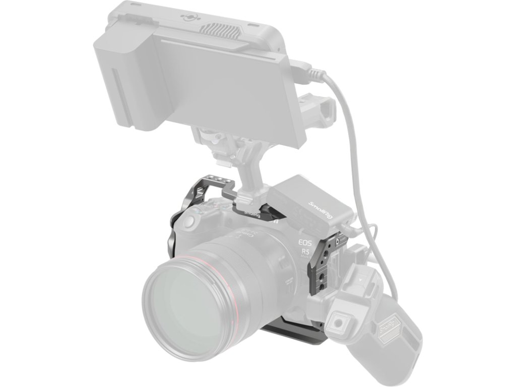 Partea superioară și lateralele carcasei sunt echipate cu șine H21 NATO, care facilitează atașarea rapidă a accesoriilor, cum ar fi mânerele superioare SmallRig, suporturile pentru monitor și brațele magice, pentru a extinde opțiunile de monitorizare.