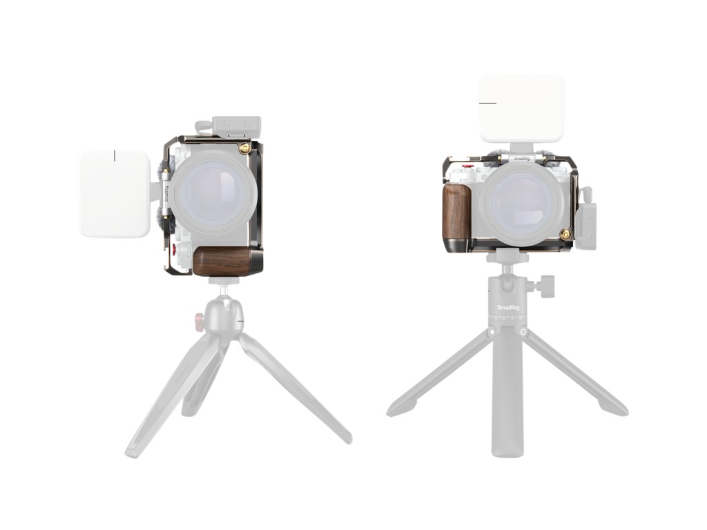 În plus, placa de eliberare rapidă Arca-Swiss din partea inferioară este compatibilă cu trepiedele SmallRig de tip Arca și cu gimbalurile DJI RS 2 / RSC 2 / RS 3 / RS 3 Pro / RS 4 / RS 4 Pro, permițând o tranziție ușoară între gimbaluri, fotografiere din mână și fotografiere din mână.