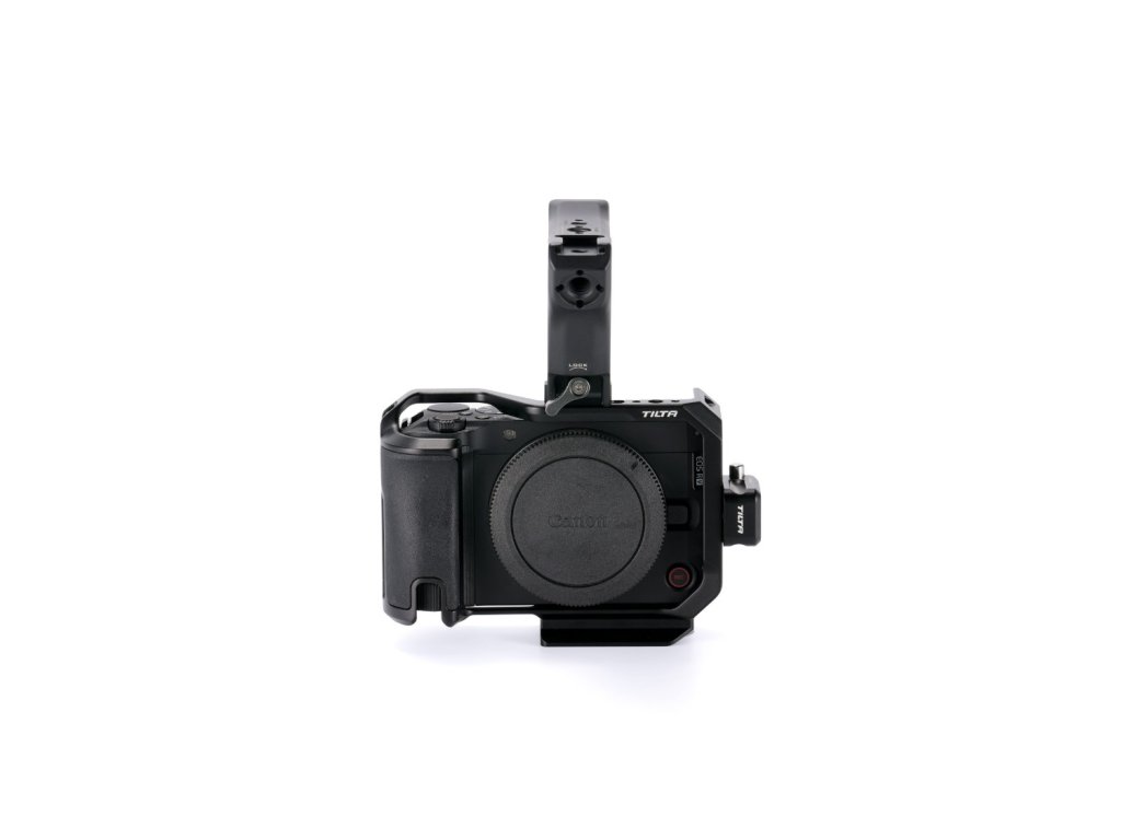 De bazăcuşcăsetpentru Canon R50 V.Această cușcăprotejează corpul camerei șivă permite să conectați o gamă largă de accesorii externefolosind mai multe opțiuni de montare, inclusivșină glisantă,Căile ferate NATO, aFilet de 1/4"-20 cupuncte de localizare.