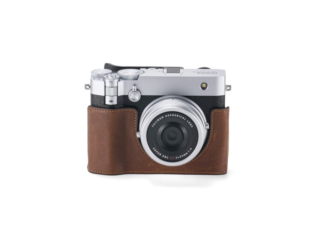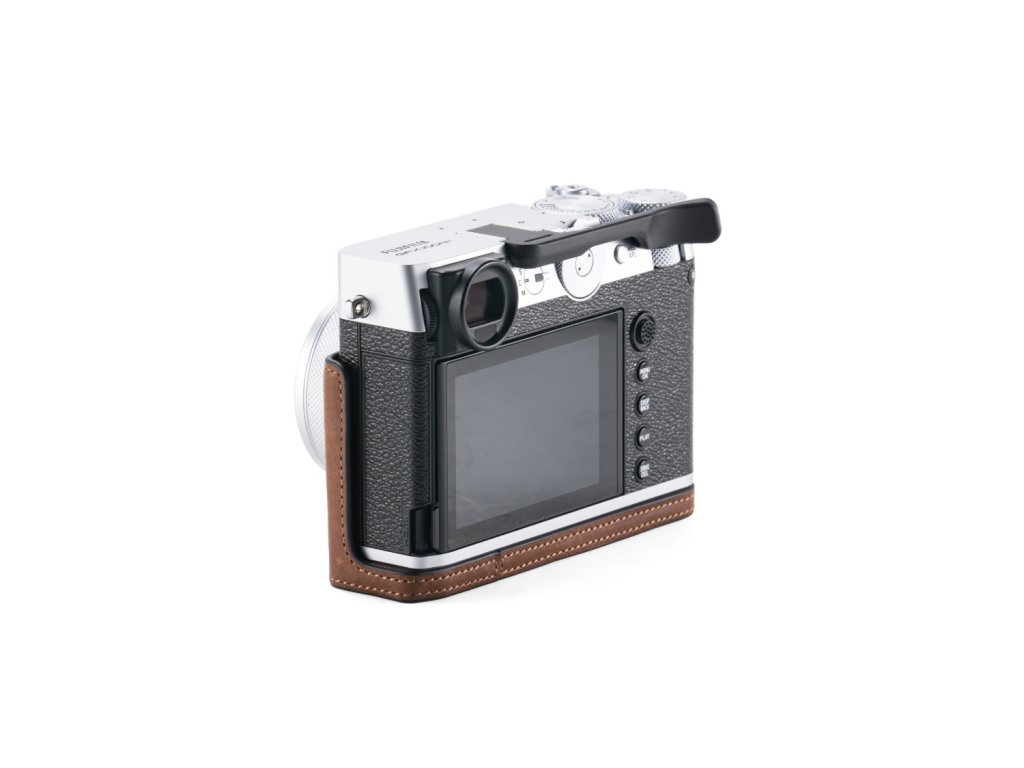 Acest kit include o husă din piele pentru camera Fujifilm GFX100RF, care se atașează cu un șurub de 1/4″-20 și oferă o modalitate mai confortabilă de a controla și manevra corpul camerei cu ajutorul unui mâner integrat.