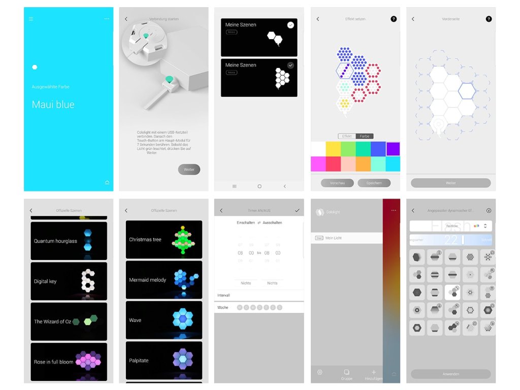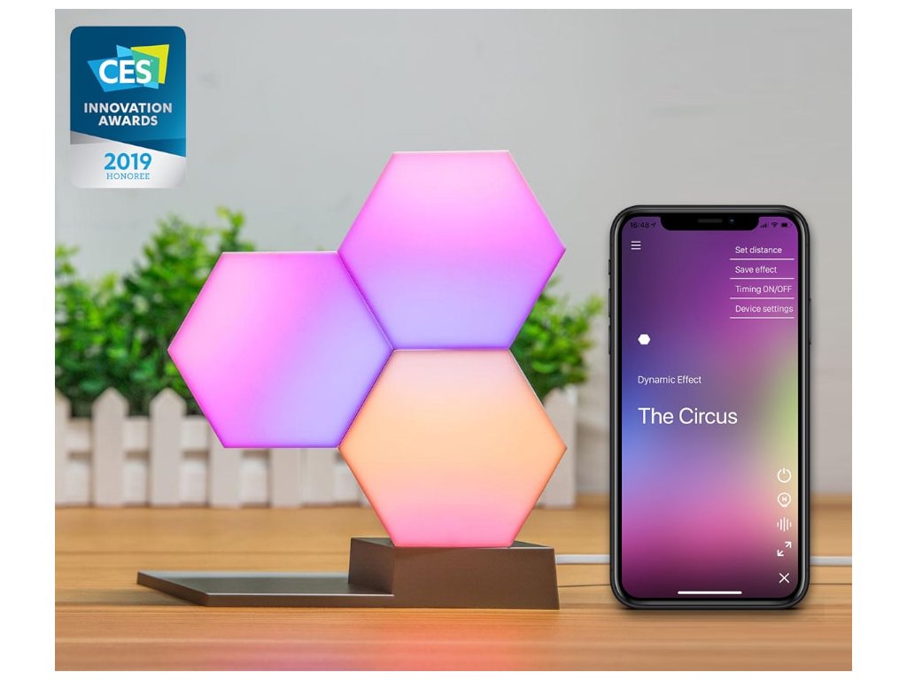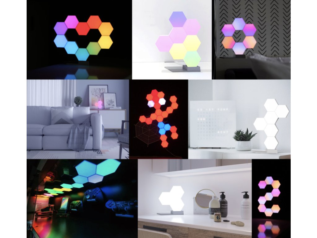 Datorită Cololight, vă puteți proiecta propriul iluminat decorativ șivei crea o atmosferă plăcută prin aplicație și 3 moduri pe care le setați pe smartphone. Creați forme din blocuri de luminăiluminat de proiectare în sufragerie, sauiluminare puternică pentru muncă sau joacă lângă computer.Inovatoaresistemul modular folosește blocuri hexagonale pentru a asambla diverse forme. Proiectați o lampă originalădin blocurile de pe piedestal, sauconectați pe perete fie pe tavan o suprafață de peste 100 de blocuri –nu există limite pentru imaginație.