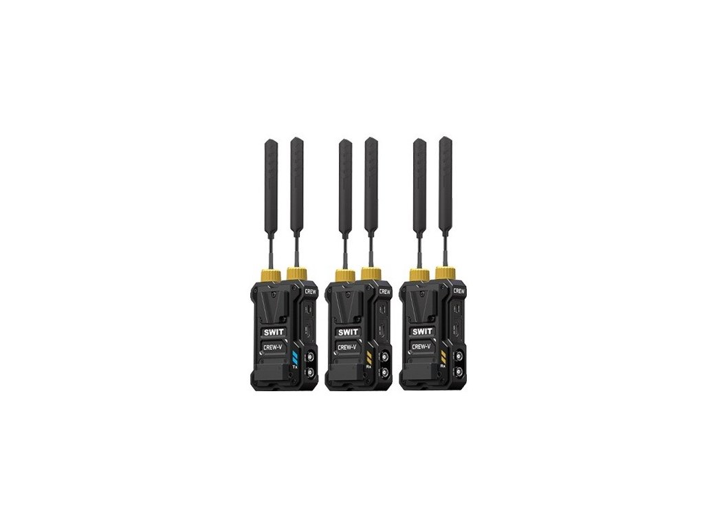 Pachetul SWIT CREW-V Tx + 2Rx oferă echipelor profesioniste un sistem de transmisie și monitorizare video wireless la cheie, cu suport dual receiver pentru monitorizare multi-punct. Acesta permite o transmisie video HD fluidă, fără pierderi vizuale, cu sincronizare perfectă cu toate dispozitivele aflate pe o rază de 1,2 km.