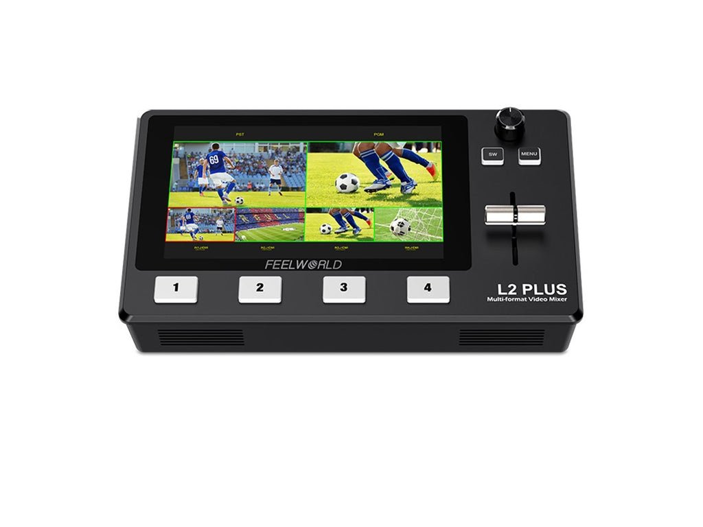 FEELWORLD L2 PLUS este o soluție portabilă completă de comutare și streaming live. Ecranul tactil LCD mare de 5,5 inchi facilitează efectuarea diferitelor operații cu o simplă atingere a degetului. Puteți vizualiza 4 camere, PST și PGM în timp real. L2 PLUS este actualizat de la LIVEPRO L1. În plus, acceptă controlul camerei PTZ, care poate controla bine rotirea, focalizarea și zoomul camerei. Funcția chroma key încorporată este ideală pentru rapoarte sau prezentări pe scenă. Îl poți folosi chiar și pentru a suprapune titluri creând grafice pentru a face transmisiunea live mai profesionistă. Chiar și conversațiile și prezentările sunt ușoare datorită microfonului separat!