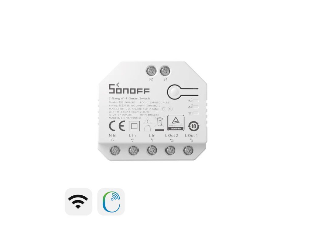 Comutator inteligent Wi-Fi SONOFF DUALR3 cu 2 relee și măsurare a consumului