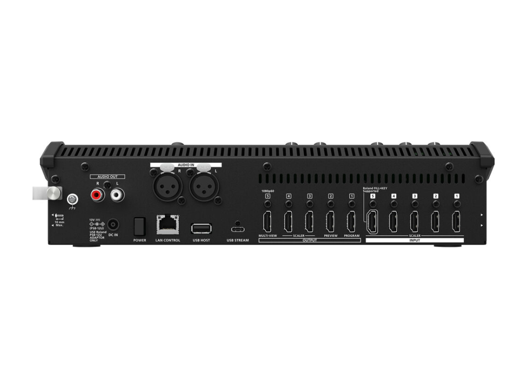 Comutatorul video Roland V-1-4K oferă producție video profesională într-un pachet portabil și ușor de utilizat. Dispune de 5 intrări HDMI cu scalere, 5 ieșiri HDMI și o ieșire de streaming USB-C, permițând integrarea perfectă a mai multor camere, laptopuri sau alte surse HDMI. Comutatorul acceptă UHD 4K60 HDR, precum și downscaling la 1080p și include decupare a regiunii de interes (ROI), efecte chroma key și luma key pentru producție live creativă. Sunetul este procesat prin 2 intrări XLR și ieșirea prin porturi RCA și de 3,5 mm cu un mixer cu 14 canale pentru control profesional. Software-ul gratuit însoțitor - V-1-4K RCS, V-1-4K Remote și Graphics Presenter - oferă control intuitiv al efectelor, titlurilor și graficii în mișcare. Este ușor și compact, fiind ideal pentru evenimente live, prezentări corporative, săli de clasă sau lăcașuri de cult.
