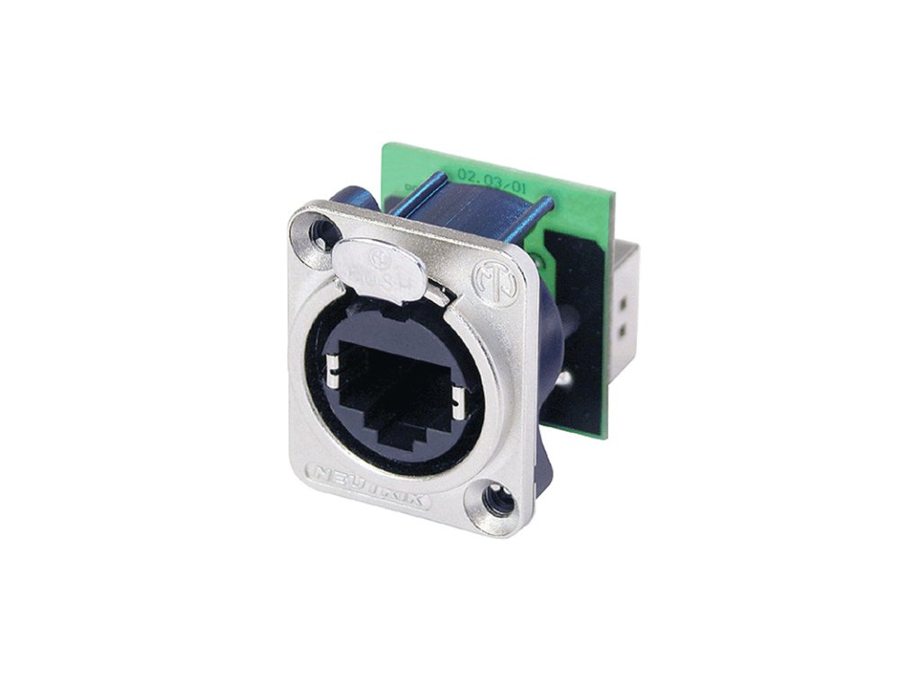 Neutrik NE8FDP - Priză trecere RJ45, flanșă metalică în formă de D cu blocare. Șuruburi de montare incluse.