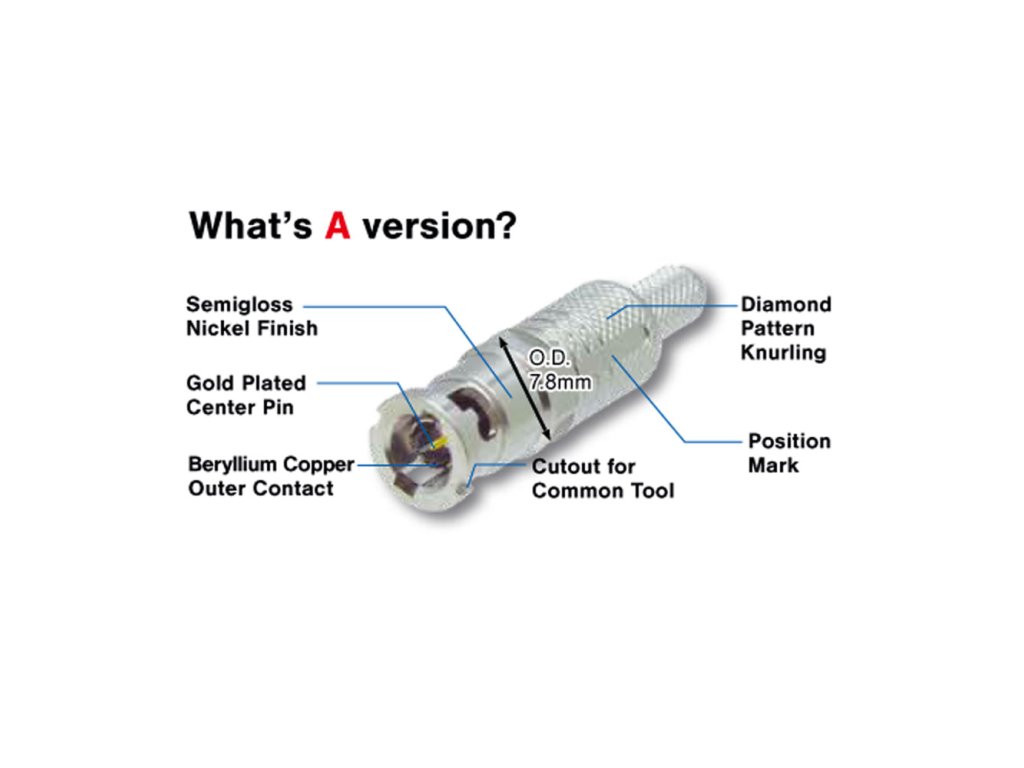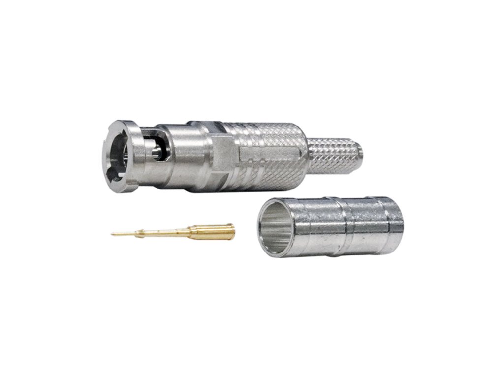 Canary HBCP-D25HWA este un conector de sertizare Micro BNC (M) de 12G, 75 ohmi (tip drept) potrivit pentru Canare L-2.5CHWS cablu.