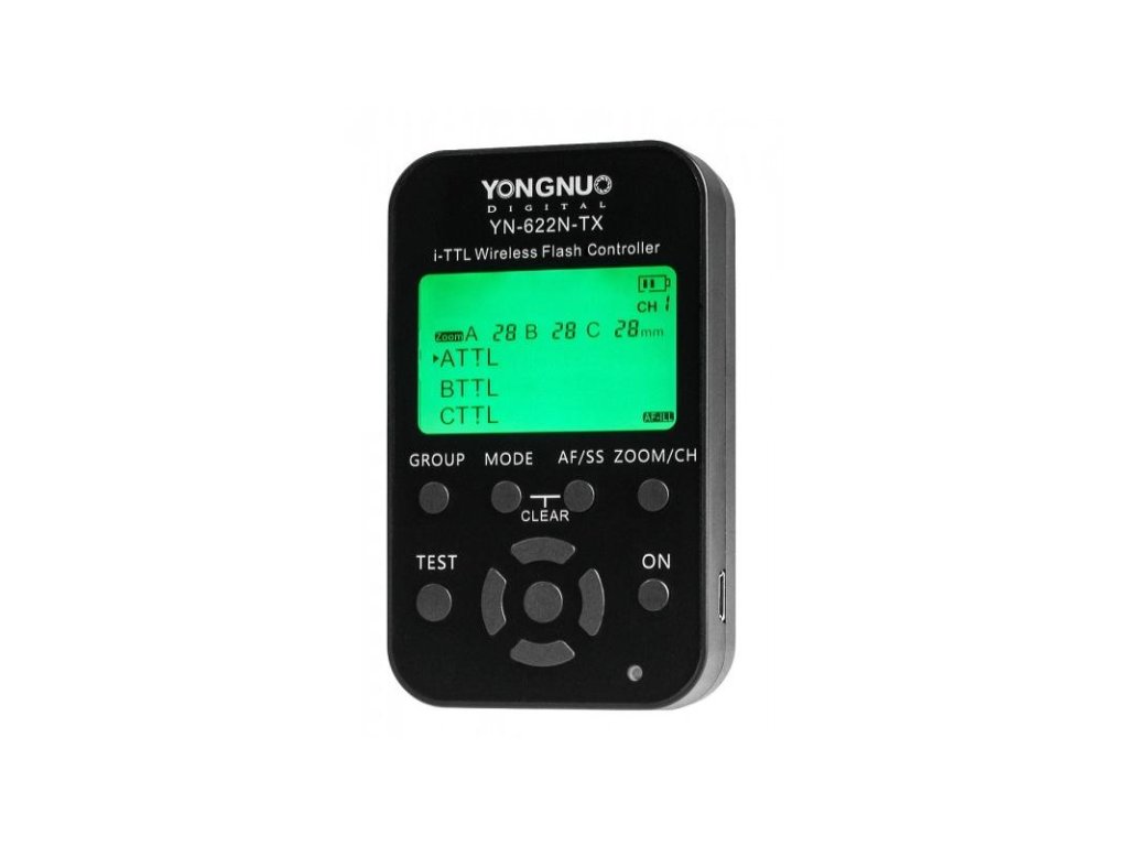 Yongnuo 622N-TX este un controler radio fără fir de 2,4 GHz pentru controlul complet al blițurilor i-TTL conectate la declanșatoarele YN-622N. Transmisia codificată oferă o rază efectivă fără interferențe de până la 100 m. Unitatea are un afișaj LCD pentru modificări convenabile ale parametrilor. În plus, are o diodă de asistență pentru autofocus. Controlerul poate funcționa în 7 canale de transmisie, blițurile pot fi împărțite în 3 grupuri controlate independent. Acest lucru va face convenabil lucrul chiar și cu un număr mare de blițuri. Dispozitivul este montat direct pe sabotul sau cablul de sincronizare al camerei și este echipat suplimentar cu o priză pentru PC. Este alimentat de două baterii AA sau baterii reîncărcabile. Yongnuo 622N-TX permite blițului sau unui grup de blițuri să funcționeze în modul automat i-TTL, modul Super Sync sau modul manual. Permite setarea puterii blițului, corecția EV și zoomul blițului, declanșarea blițului cortină față și spate și acceptă blițul de modelare. Controlerul are o priză USB pentru actualizarea software-ului intern (descărcabil de pe site-ul producătorului). SPECIFICAȚII: Compatibil cu Yongnuo YN-622N Sincronizare până la 1/250 s (mod Auto FP 1/8000 s) 3 grupuri de bliț A, B, C Ecran LCD mare cu iluminare din spate Transmisie codificată de 2,4 GHz 7 canale acceptă moduri TTL/ Syper Sync/ ManualParametri suplimentari