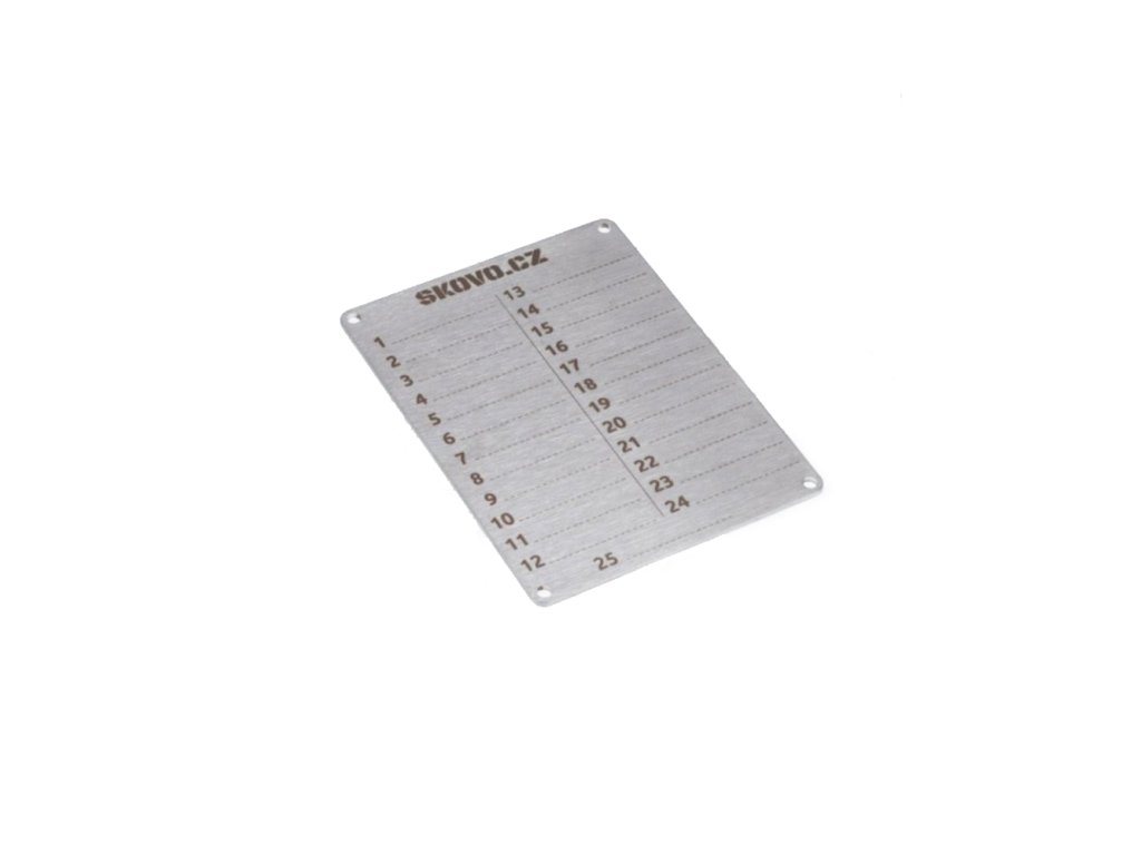 Plăcile de oțel Skovo sunt concepute pentru a înregistra în siguranță parole BIP39 de 12, 18, 24 (sau 25) cuvinte folosind un set de litere alfabetice pentru a recupera cheile private de criptomonede din portofelele Hardware Trezor sau Ledger (sau orice altceva care trebuie stocat). Punctul de topire al acestui material este de 1400 °C.