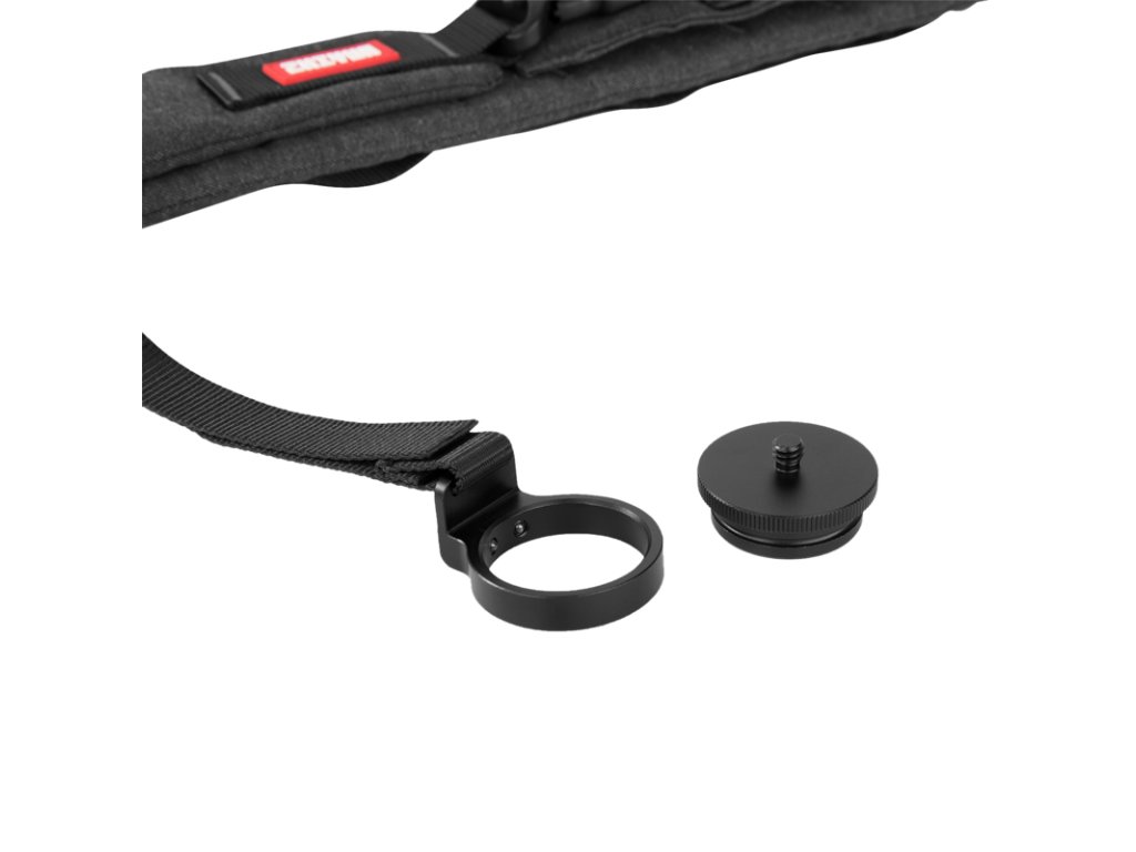 Curea multifuncțională pentru cameră (medie) este proiectată pentru a suporta monopodele TransMount mini și telescopice și orice atașat acestora, cum ar fi un stabilizator precum Weebill LAB.Punctul de echilibru suplimentar permite fotografii mai stabile și confortabile și permite controlul mai ușor al roții de focalizare a stabilizatorului.