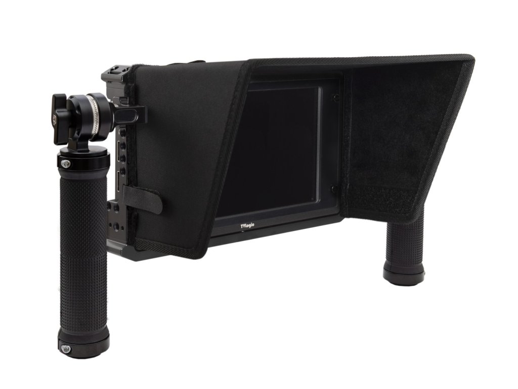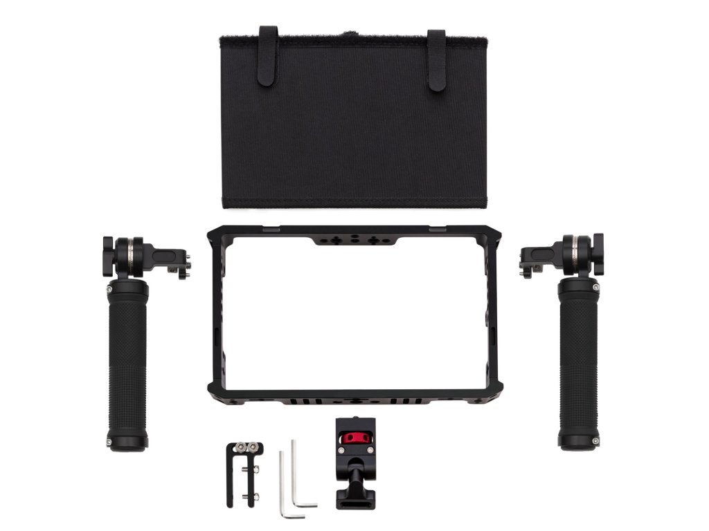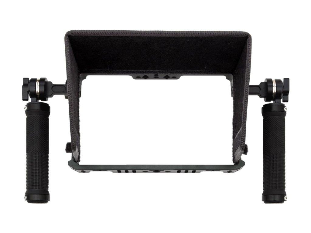 Cușcă din aluminiu în formă pentru monitoare de câmp de 7" TVLogic F-7H/M2/F-7HS. Sunt incluse două mânere ușoare, de prindere perfectă, cu rozete în stil ARRI. Mânerele sunt realizate din cauciuc moale și sunt foarte confortabil de ținut atunci când faci un film sau filmezi un videoclip. Datorită mânerelor perfecte și suportului de montare, acum puteți utiliza monitorul TVLogic F7H montat, de mână sau chiar singur atunci când utilizați un receptor wireless! Parasolarul inclus, ușor de atașat, vă protejează monitorul de strălucire, menținând în același timp accesul la butoanele de control ale monitorului.