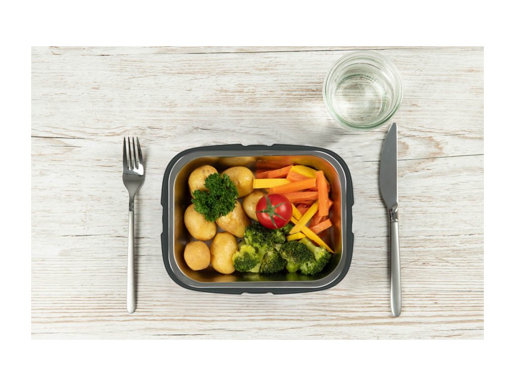 Un bol interior detașabil cu un separator, de exemplu, pentru partea cu vasul principal și partea cu garnitura, face parte din pachetul de bază. Plus că poți cumpăra mai multboluri separate și astfel te echipează pentru posibilitatea de a servio masă caldă în cadrul unei familii mai numeroase sau, de exemplu, a unei echipe de lucru.
