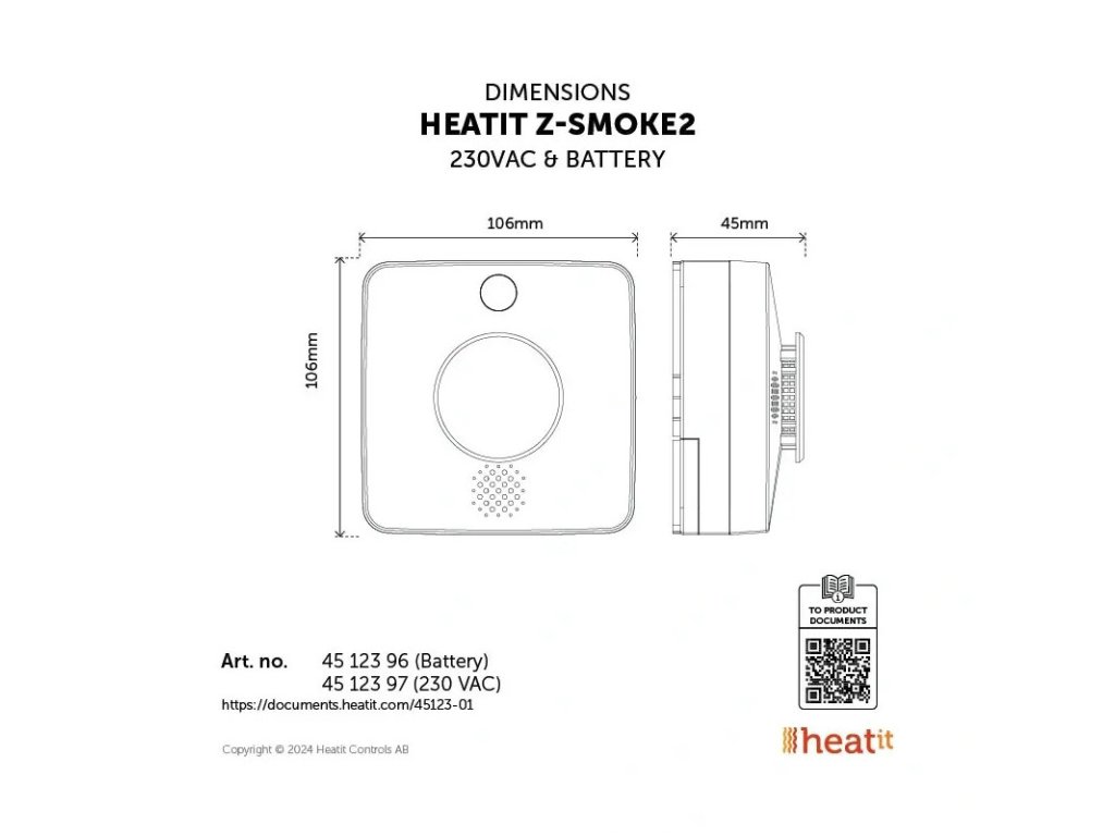 Detector Heatit Z-Smoke2 230VAC, senzor de fum Z-Wave