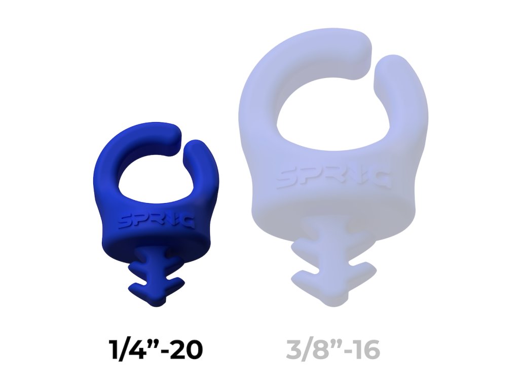 Dispozitiv de gestionare a cablurilor SPRIG albastru pentru găuri filetate de 1/4"-20 (pachet de 6)