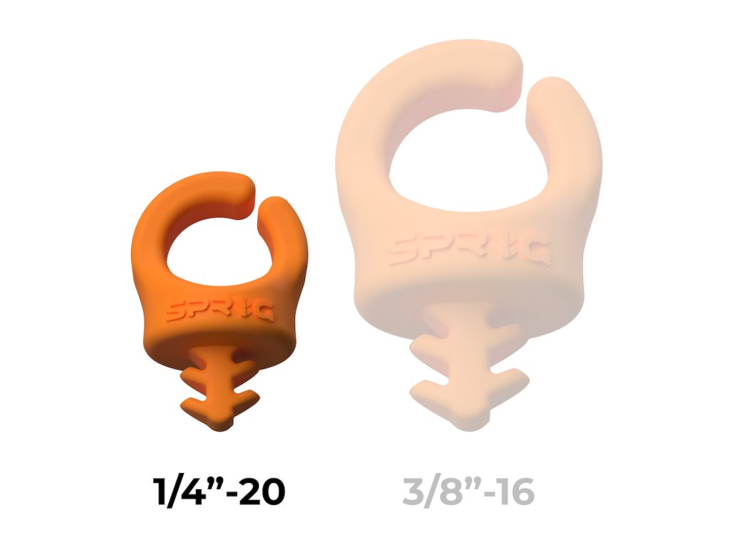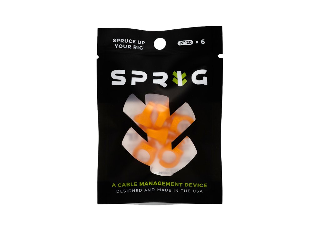 Oferit ca pachet de 6, dispozitivul de gestionare a cablurilor Orange Sprig oferă regizorilor și videografilor o soluție rapidă, convenabilă și ușoară pentru a menține liniile de cablu organizate pe echipamentele lor cinematografice și pe platformele lor de cameră. Cu o răsucire rapidă, poate fi instalat sau scos rapid dintr-un orificiu filetat de 1/4"-20. Fabricat din material durabil turnat prin injecție, poate rezista la rigorile vieții la fața locului.