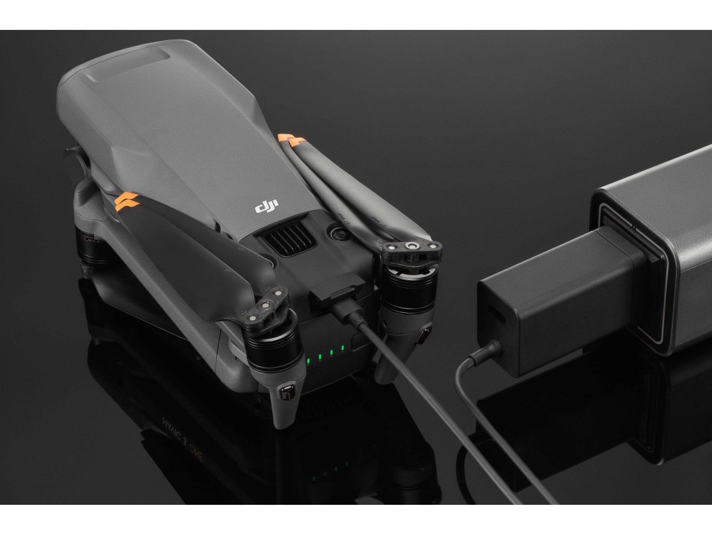 Încărcătorul este destinat încărcării simultane a bateriei de zbor și a telecomenzii Datorită tehnologiei GaN, încărcătorul este compact cu o viteză de încărcare crescută. Are două porturi de ieșire (USB-C și USB-A) și poate încărca simultan bateriile inteligente de zbor pentru Mavic 3 a și controler. Acceptă protocoalele PPS și PD și vă poate încărca telefonul, laptopul și alte dispozitive.