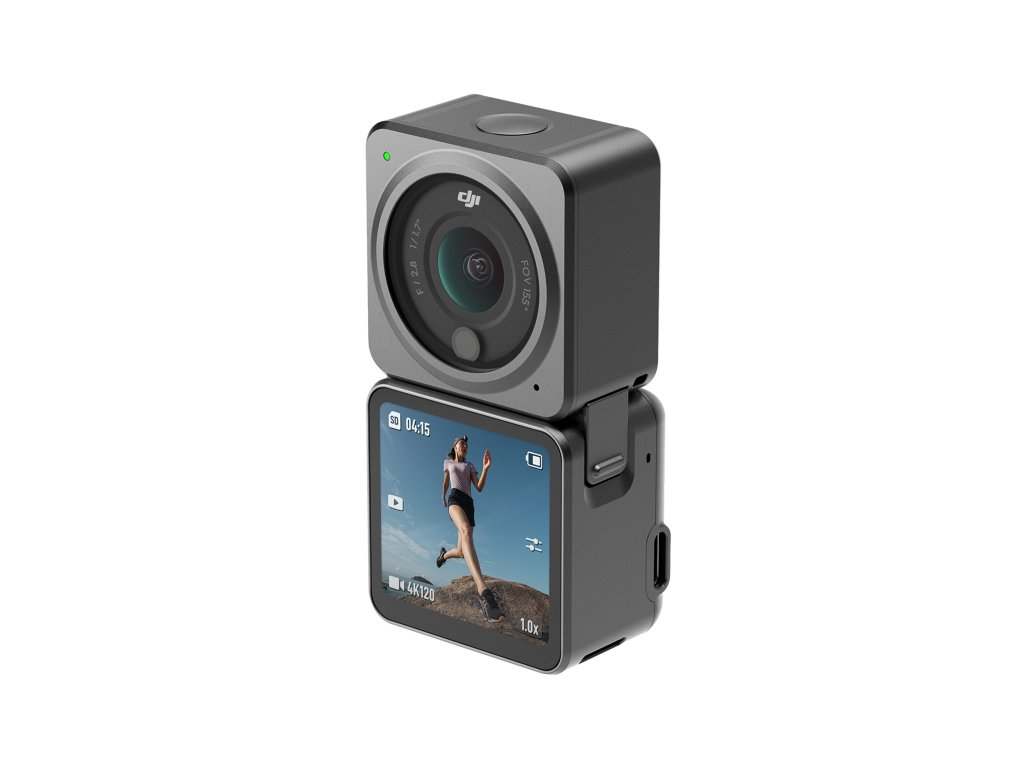 DJI Action 2 este succesorul popularului DJI Osmo Action, care vine cu un design modular. Datorită dimensiunii și greutății camerei, aceasta poate fi atașată de o sfoară sau în mod tradițional de o cască etc. Oferă 4K120, 155° FOV, senzor CMOS de 1/1,7 inchi, două ecrane tactile și o stabilizare excelentă.
