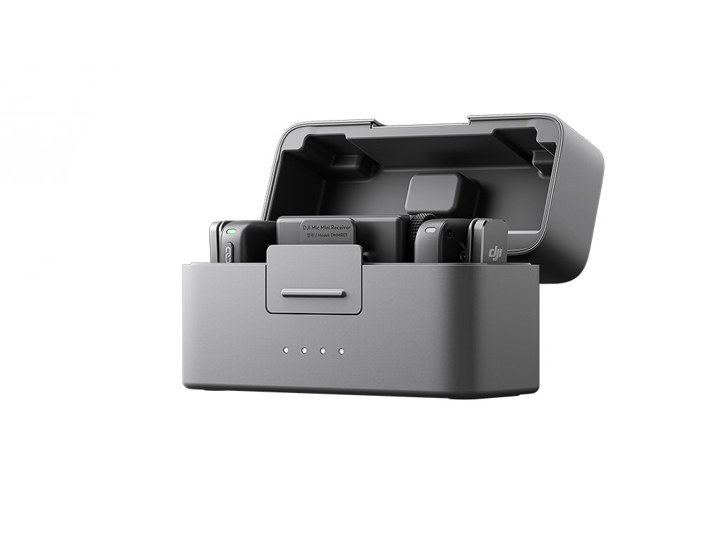 DJI Mic Mini este proiectat având în vedere caracterul compact și practic. Carcasa sa inovatoare de încărcare vă permite să stocați cu grijă două transmițătoare, un receptor, adaptoare pentru dispozitive mobile și parbrize. Paravanele pot rămâne pe transmițătoare chiar și în timpul depozitării, făcând întregul set și mai convenabil pentru utilizarea de zi cu zi și portabilitate.