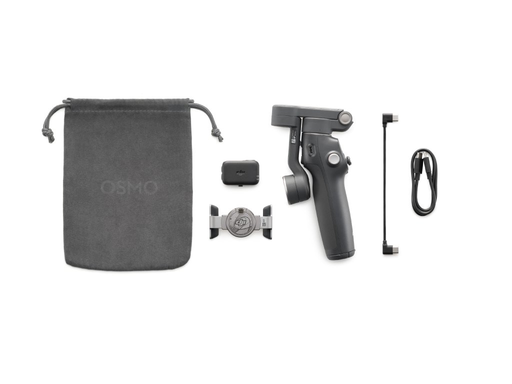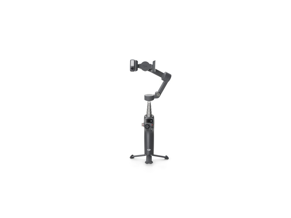 Trepied DJI OM Grip[7]:Un trepied mic și portabil, care servește și ca extensie pentru mâner. Este echipat cu o suprafață antiderapantă pentru o prindere confortabilă.