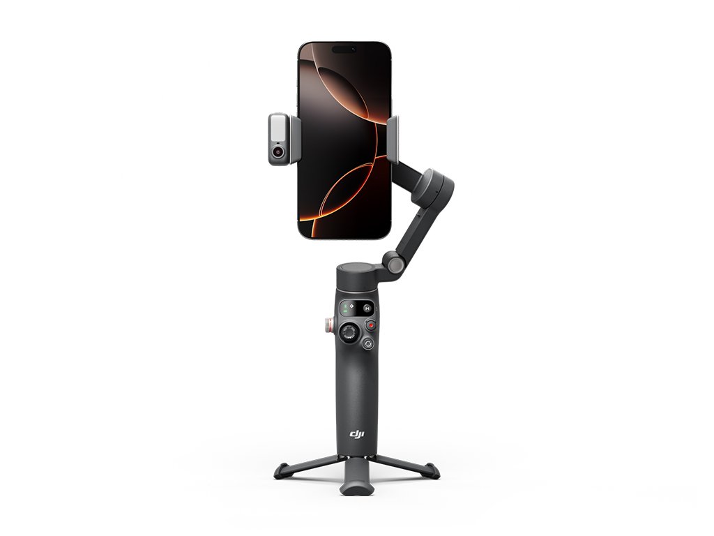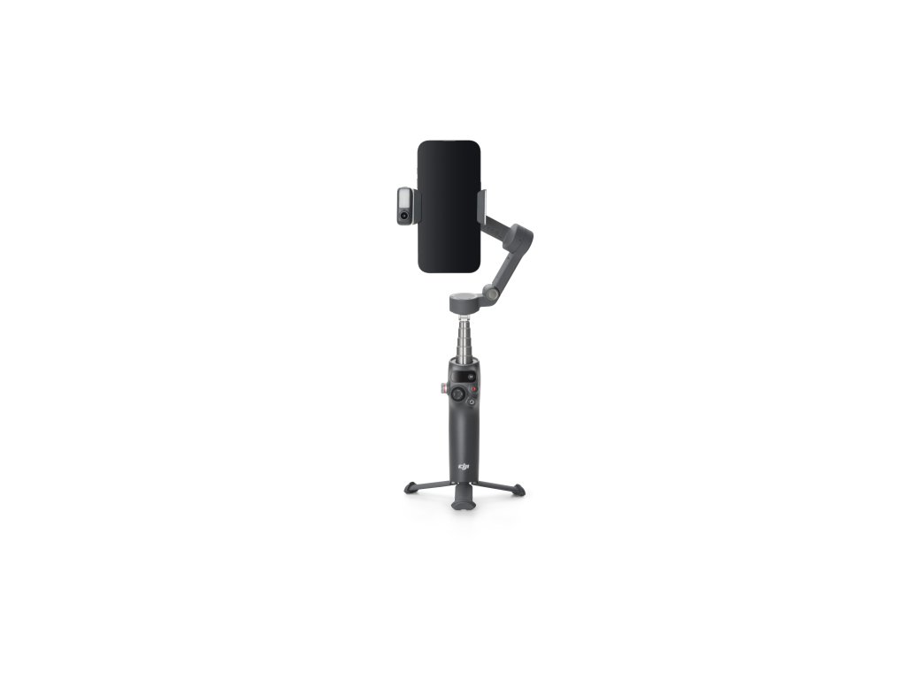 Integrarea perfectă a gimbalului și a trepiedului înseamnă că nu trebuie să transportați accesorii suplimentare. Pur și simplu așezați trepiedul pe o suprafață stabilă pentru a crea conținut [9].