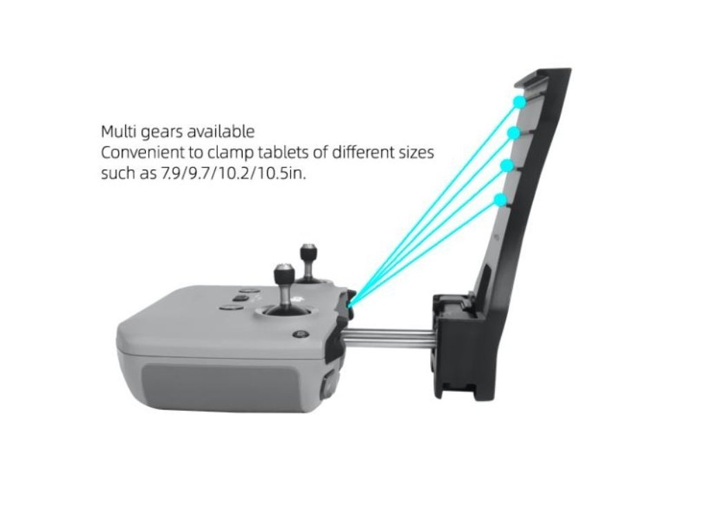 Suportul pentru tabletă pentru DJI Mavic 3, DJI Mavic Air 2, Mini 2, Mini 4K, DJI Mini SE și DJI Air 2S este conceput pentru tablete cu 7,9", 9,7", 10,2" și 10,5". Greutate 51 g. Acest montajul pentru tabletă permite utilizatorilor să atașeze dispozitive mobile mari la controlerul lor. Suportul este compatibil cu majoritatea tabletelor de pe piață, iar designul lor permite atașarea ușoară.