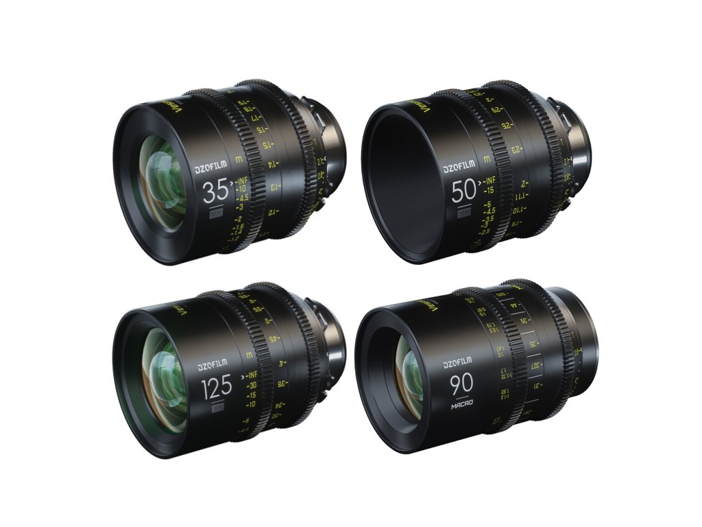 Kit de lentile DZOFILM Vespid 4 (35mm, 50mm, 125mm T2.1, Macro 90mm T2.8) – metric, imperial (baionetă PL). VESPID PRIME