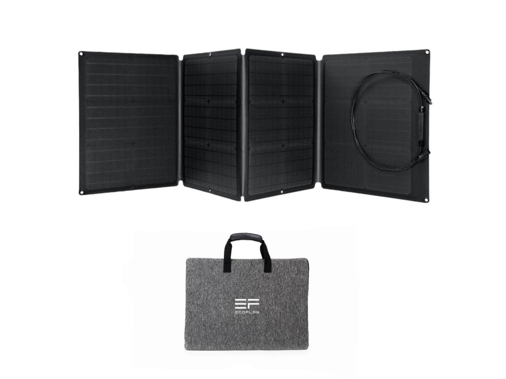 Panou solar - celule de siliciu monocristalin extrem de eficiente, putere 110 W, rezistente la apa, stocabile si pozitionabile. Cu panoul solar EcoFlow de 110 W, nu trebuie să vă faceți griji pentru locurile în care nu există priză electrică. Panoul se caracterizează printr-o eficiență ridicată și, datorită celulelor eficiente de siliciu monocristalin, vă puteți reîncărca confortabil stația de încărcare EcoFlow Delta 1000 sau Delta 1300.