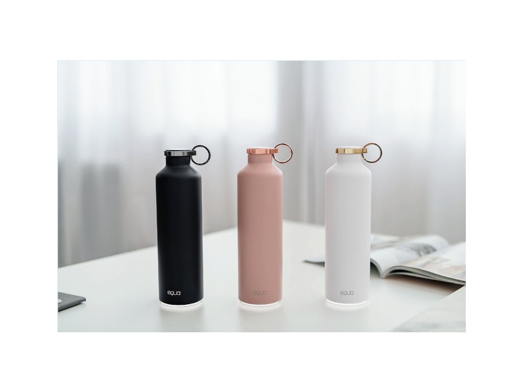 Volumul generos de 680 ml este ascuns într-o carcasă din oțel inoxidabil cu pereți dubli, cu capac de culoarea sticlei și un inel practic. Equa te avertizează cu o lumină în partea inferioară că este timpul să te răsfeți cu o înghițitură și un moment de relaxare doar pentru tine, pe care îl poți completa cu un simplu exercițiu de respirație conform aplicației Equa.