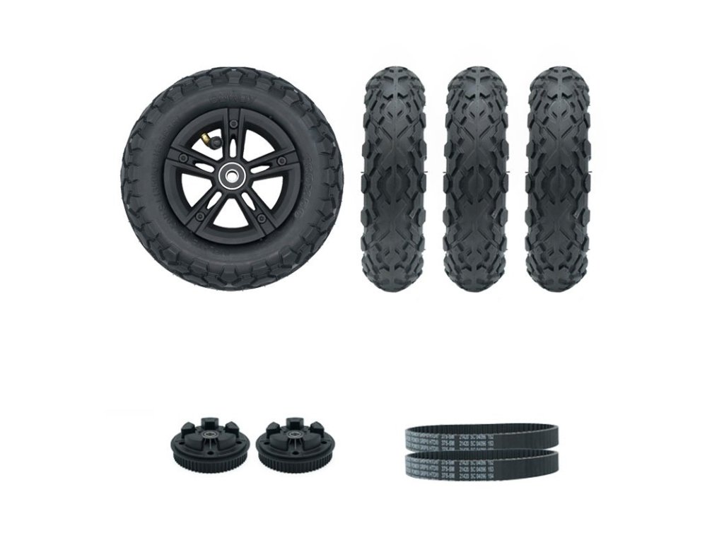 Diametru 160 mm, roti pneumatice. Setul include: 4x roată de 160 mm, 2x curea (Abt-15W340P), 2x scripete 56T (AP-5H16W56T), 2x capac motor (Aiw-160M), 8x rulment.Parametri suplimentari