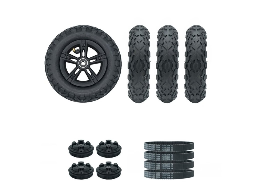 Diametru 175 mm, roti pneumatice. Setul include: 4x roata de 175 mm, 4x centura (Abt-15W375P), 4x adaptor pentru roata (AP-5H16W66T), 8x rulment.Parametri suplimentari