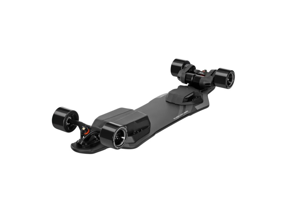 Exway Flex Pro este un e-longboard electric, flexibil, cu roți din poliuretan de 90 mm, o baterie uriașă de 345 Wh și motoare cu o putere maximă de 2520 de wați. Pachetul include un încărcător GaN, pe care îl poți încărca placa în 2,3 ore. Produs de Riot. Compatibil cu roți de dimensiuni de la 80 la 120 mm.