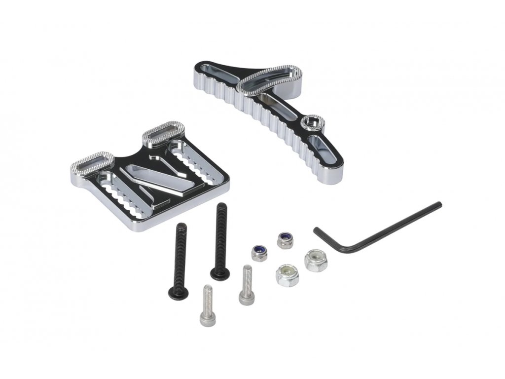 Footstop poziționabil v2 de la marca Newbee. Material: Aluminiu anodizat frezat CNC 6061-T6. Pachetul include șuruburi M5*35mm și piulițele corespunzătoare pentru montarea pe placa de bază a camionului. Culoare: ArgintiuParametri suplimentari