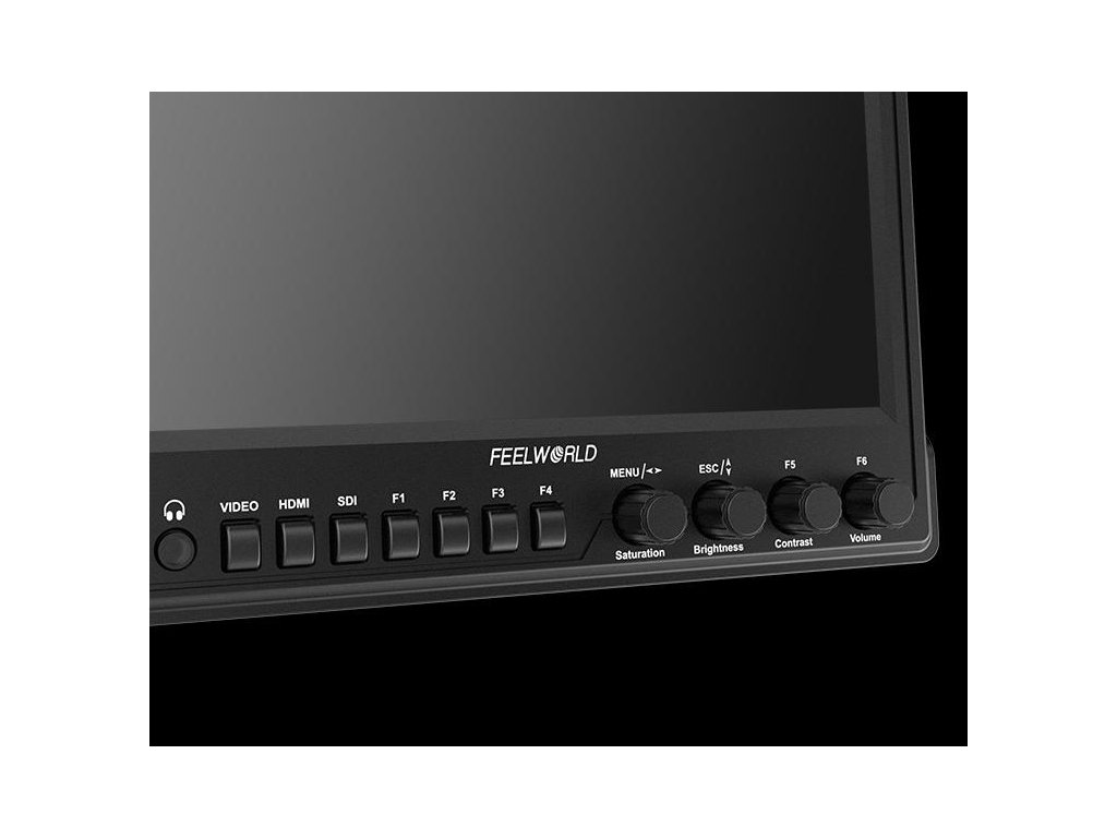 Cadrul monitorului este fabricat din aliaj de aluminiu foarte rezistent și are filete standard de 1/4" pe marginile din stânga, dreapta și de jos. În plus, monitorul vine cu un panou solar detașabil. Monitoarele Feelworld au și un sistem flexibil de alimentare cu energie: acestea vin cu o placă pentru baterie ca standard F970 și poate fi echipat opțional cu plăci pentru baterie D28S/D54, LP-E6, U60 sau adaptor AC Acumulatorul/încărcătorul nu este inclus.