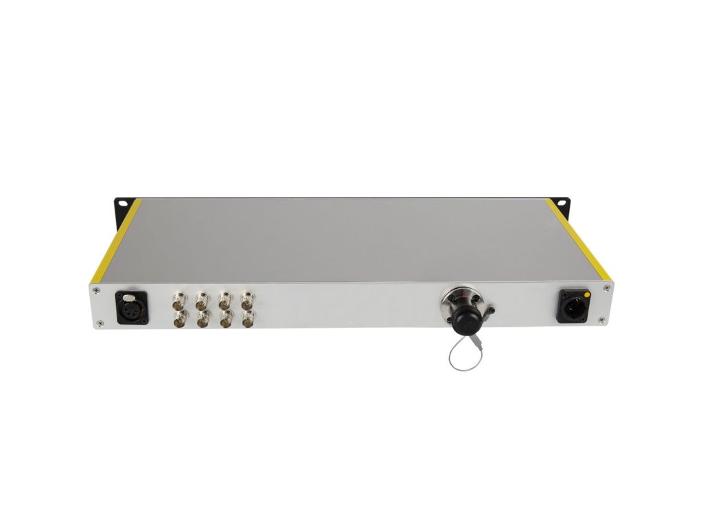 Pe lângă putere și control, Fibre Base One oferă capabilități convenabile de monitorizare și comutare. Acesta oferă patru ieșiri 3G-SDI care vă permit să monitorizați și să comutați semnalele camerei după cum este necesar. Dispozitivul include, de asemenea, un port LAN Ethernet pentru conexiune la rețea, care permite controlul și gestionarea de la distanță a camerelor PTZ. În plus, include o ieșire de putere XLR cu 4 pini care poate fi utilizată cu un controler IP PTZ opțional.