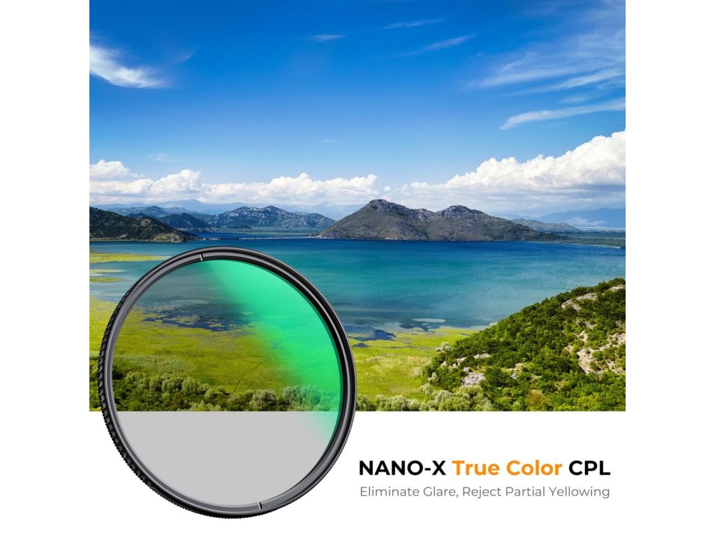 Filtru CPL K&F Concept True Color 55 mm: filtru AGC japonez cu 28 de straturi și nano-acoperire, fără nuanțe galbene, îmbunătățește contrastul și culorile pentru fotografii vii cu cerul/norii.