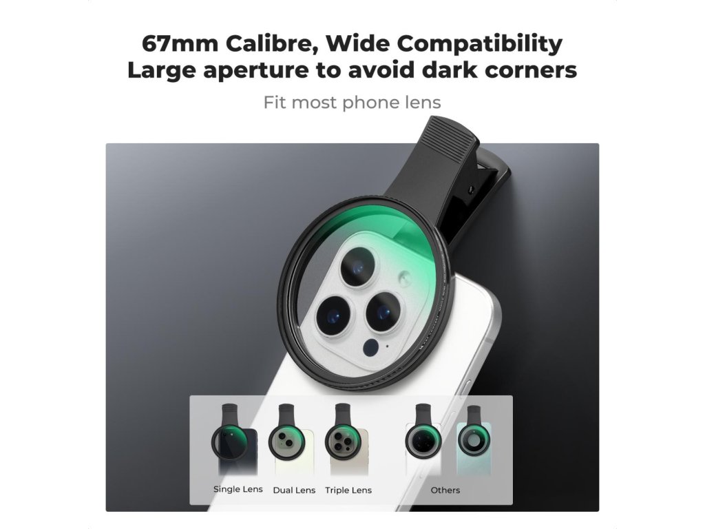 Filtru cu prindere rapidă Black Mist 1/4 67 mmde la K&F Concept pentru telefoane mobile. Este potrivit pentru toate modelele de telefoane mobile.
