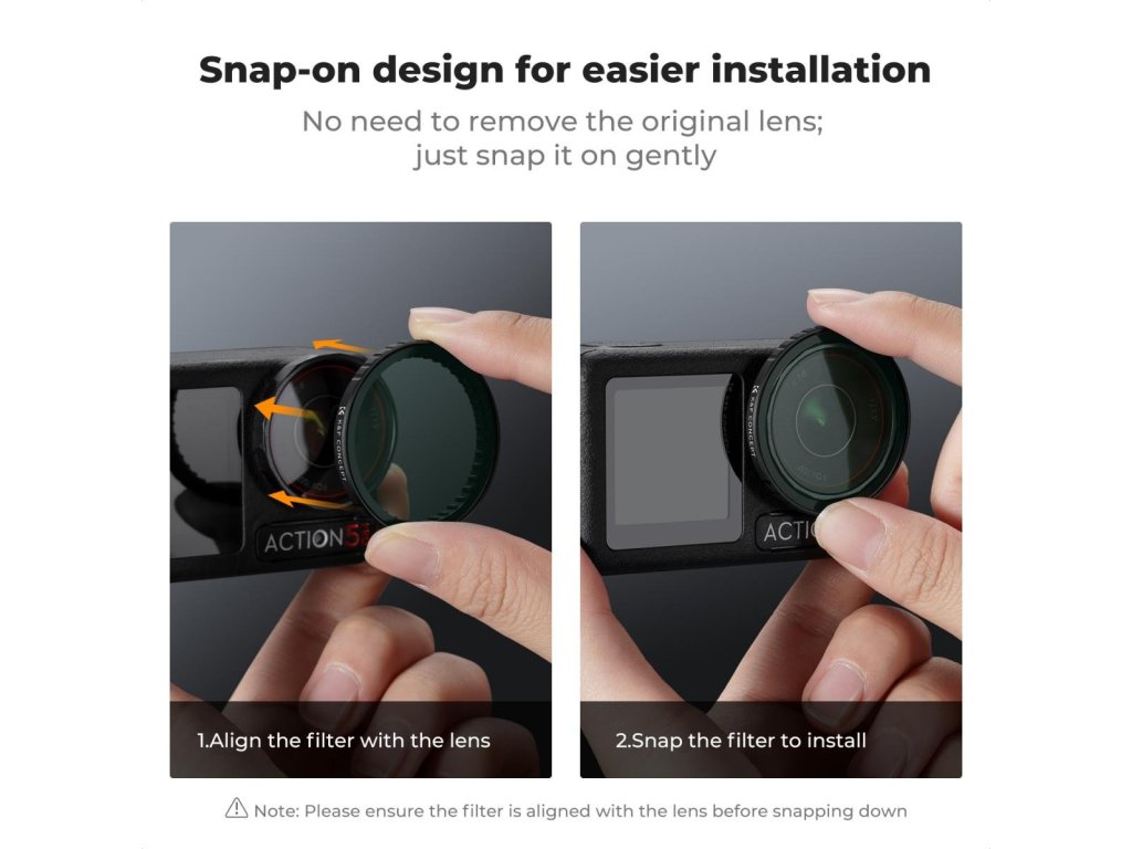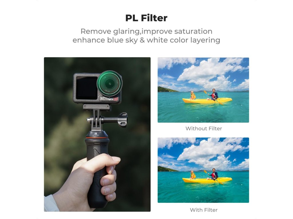 Duceți fotografiile de acțiune la nivelul următor cuFiltru CPL K&F Concept KF01.2438V1, conceput pentruDJI Osmo Action 4Acest polarizator circular minimizează strălucirea și reflexiile, crescând în același timp profunzimea culorii și contrastul - ideal pentru scene dinamice în aer liber.