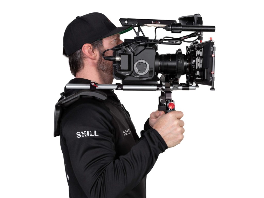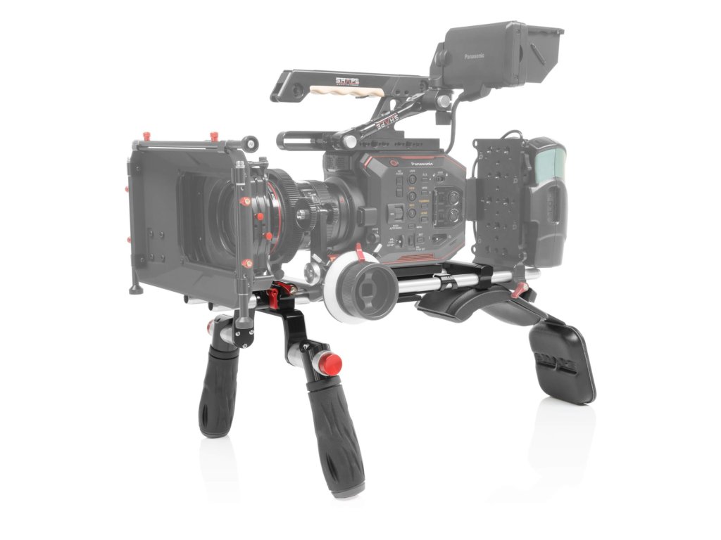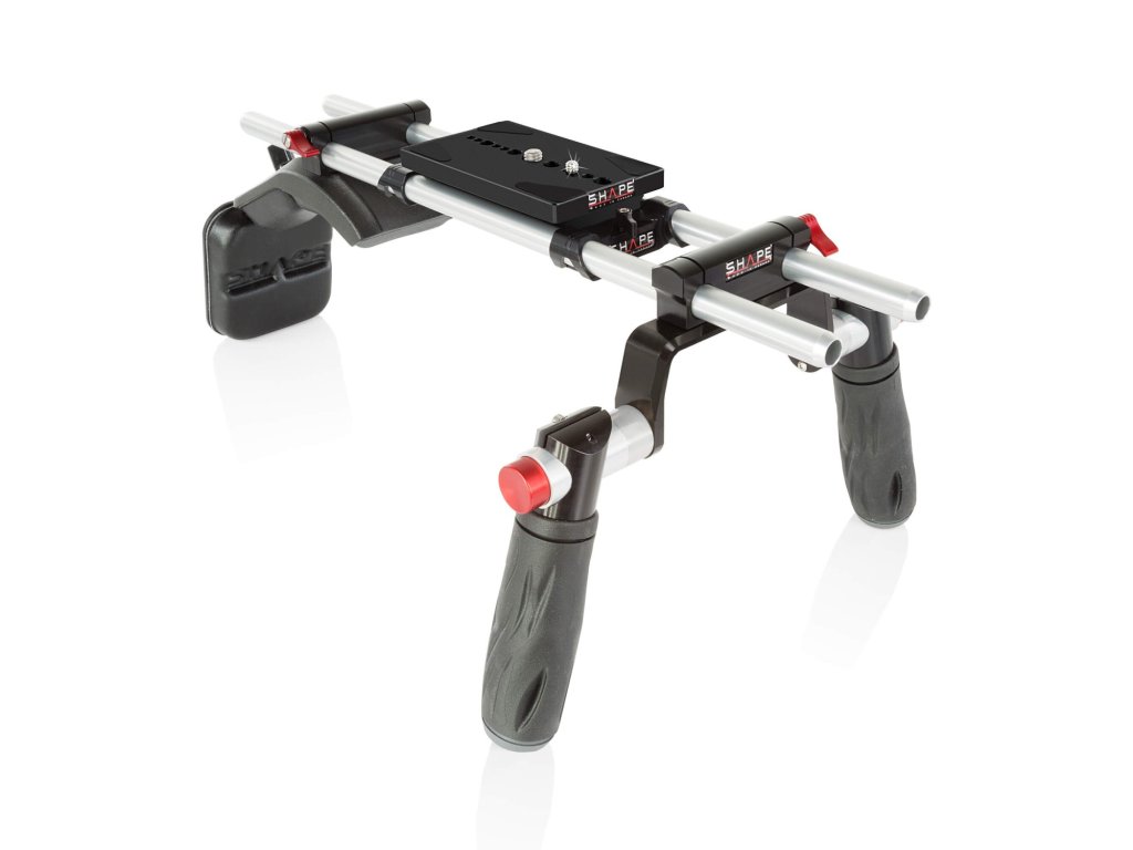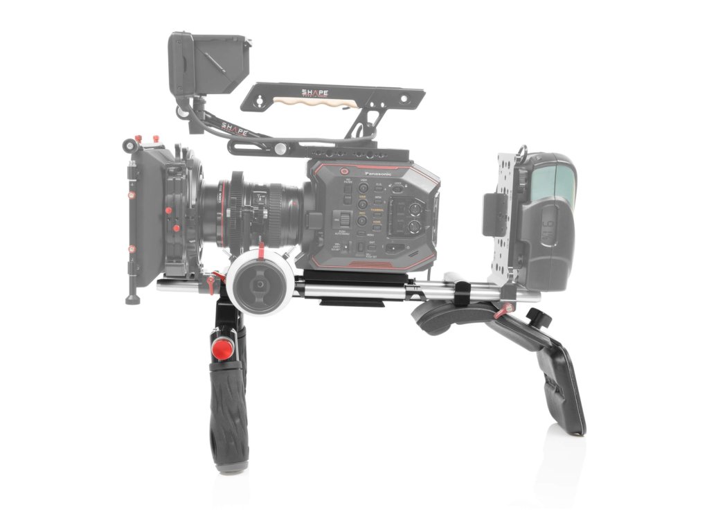 Suportul de umăr al lui SHAPE este un sistem de suport ușor (LWS) pentru camera Panasonic AU-EVA1. Include o placă de bază EVAB15 cu bloc de bară, un mâner HAND5 cu bloc de bară și sistem Push-Button, o pereche de bare de 15 mm și 18 inchi și un suport pentru umăr.