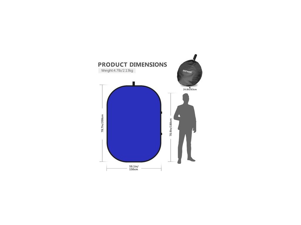 Fundal pliabil Neewer, 150x200cm, culoare albastru și gri, material: combinație de curele de oțel și țesătură din poliester, greutate 490gParametri suplimentari