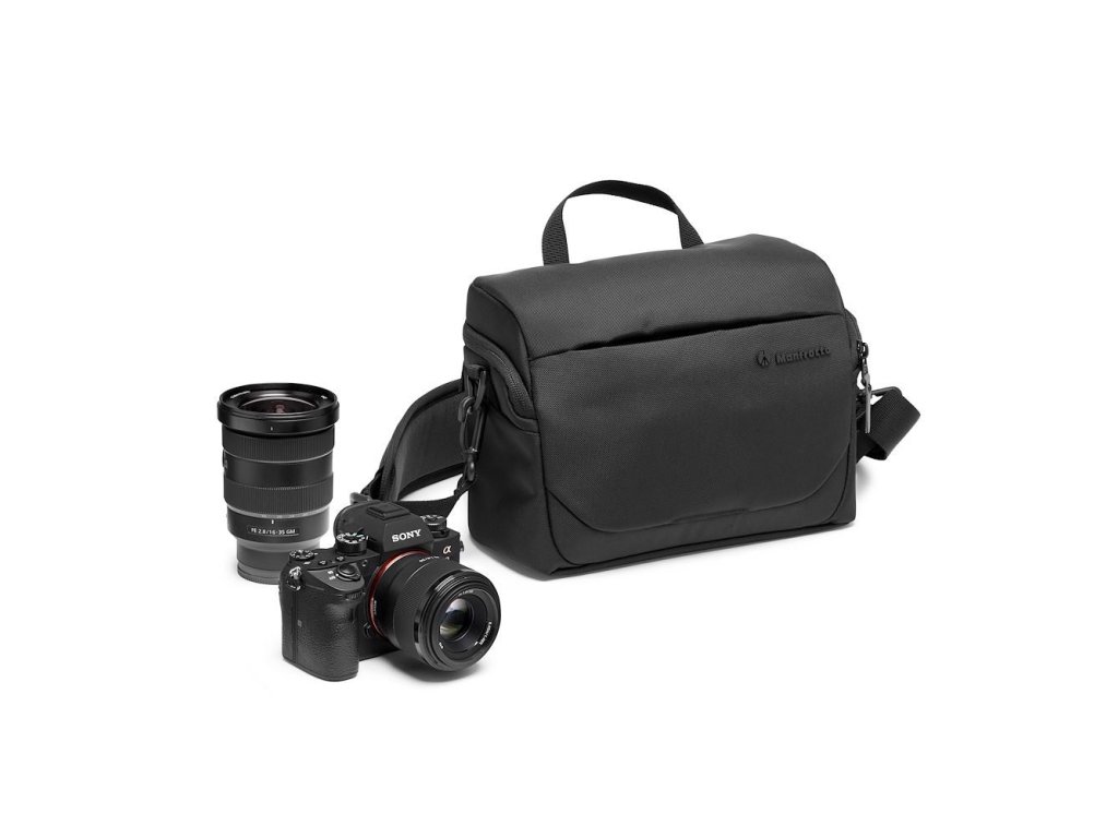 Geanta de umăr avansată pentru cameră M III ține cu ușurință o cameră fără oglindă împreună cu 2 lentile și vă protejează echipamentul atunci când sunteți în deplasare. Puteți chiar să introduceți celelalte accesorii și elemente esențiale pentru o zi în deplasare.