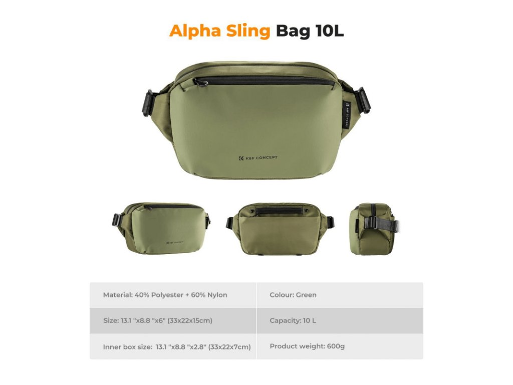 Geanta fotografica K&F Concept Alpha Sling Bag 10 l - verde
