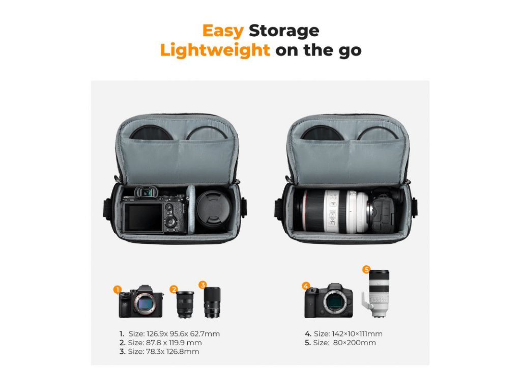 Geanta K&F Concept Camera Sling Bag 5 l este combinația perfectă de funcționalitate și stil. Dimensiunile sale compacte (24 x 21 x 12 cm) și greutatea ultraușoară (335 g) îl fac ușor de transportat cu tine în orice moment. Datorită curelei sale reglabile (75-134 cm), o poți purta ca geantă de umăr sau geantă minimalistă de zi cu zi. Fabricat din pânză de înaltă calitate, oferă o protecție excelentă pentru echipamentul dvs., inclusiv împotriva șocurilor și loviturilor accidentale. Un compartiment detașabil vă permite să personalizați interiorul, iar o deschidere largă cu fermoare duble YKK asigură acces rapid la camera dvs. Numeroase buzunare și un mâner convenabil îl fac un echipament indispensabil pentru fotografierea în oraș, plimbări foto, călătorii scurte sau utilizarea de zi cu zi. Caracteristici principale ale produsului geanta fotografica ergonomica cu o capacitate de 5 l design compact si modern ideal pentru utilizarea de zi cu zi dimensiunile interne ale gentii sunt 20 x 16 x 10 cm cantareste doar 218 g curea de umar reglabila - lungime de la 75 la 134 cm deschidere latime a geantă pentru acces rapid la echipament compartiment detașabil pentru burete care vă permite să personalizați interiorul din pânză de înaltă calitate oferă protecție împotriva șocurilor și loviturilor fermoare metalice duble YKK spațiu accesibil: buzunar superior, buzunar lateral și buzunar frontal cu fermoar mâner convenabil pentru transport ușor în mână stil elegant, minimalist pentru a se potrivi oricărei ocazii Dimensiunea ideală pentru orice ocazie Geanta K&F Concept Camera Sling Bag 5L este sinonimă cu funcționalitatea și stilul într-unul. Dimensiunea sa compactă o face ideală pentru utilizarea de zi cu zi, fie pentru escapade urbane sau călătorii scurte. Datorită ultra-ușoarei sale, nu va pune o presiune excesivă pe umăr, făcându-l alegerea perfectă pentru orice ocazie - de la o plimbare zilnică la o sesiune de fotografie în aer liber de ore. Utilizări multiple Această geantă nu este doar un refugiu sigur pentru camera ta; este o soluție multifuncțională care se adaptează ergonomic nevoilor dumneavoastră. Dotat cu un compartiment detașabil, vă permite să personalizați confortabil interiorul. Indiferent dacă purtați o cameră DSLR, lentile sau alte accesorii, geanta K&F Concept Camera Sling Bag 5L poate fi personalizată cu ușurință pentru a se potrivi nevoilor dvs. actuale. Când scoateți compartimentul, obțineți o geantă de umăr elegantă, ideală pentru utilizarea de zi cu zi. Acces rapid la camera dvs. Fiecare fotograf știe cât de important este timpul de răspuns. De aceea, geanta K&F Concept Camera Sling Bag 5 l este concepută pentru acces instantaneu și ușor la echipamentul dumneavoastră. Datorită deschiderii sale largi și fermoarelor duble YKK cu mânere metalice, îți poți scoate camera în câteva secunde și poți surprinde cele mai trecătoare momente. Gata cu cadrele pierdute iremediabil! Această geantă vă permite să acționați rapid în orice situație. Protejați-vă echipamentul la cel mai înalt nivel Echipamentul dvs. foto-video valoros merită cea mai bună protecție. Geanta K&F Concept Camera Sling Bag este realizată din pânză de înaltă densitate care oferă nu numai durabilitate, ci și protecție superioară împotriva elementelor. Interiorul gros, căptușit și clapeta superioară vă protejează eficient echipamentul de șocuri și lovituri. Indiferent unde vă aflați, aveți siguranța că camera dvs. și obiectivele sunt în siguranță. Eleganță și durabilitate Fiecare element al genții a fost atent proiectat pentru a vă oferi nu numai stil, ci și confort optim la purtare. Capetele cu fermoar dublu finisate cu o tehnică de electrolustruire garantează durabilitate de lungă durată. Un mâner confortabil de transport și o curea reglabilă detașabilă sporesc funcționalitatea genții. Acest lucru vă permite să îl ajustați la înălțimea și preferințele dvs. zilnice de transport. Varietate de utilizare Indiferent dacă sunteți fotograf profesionist sau amator, această geantă vă va satisface toate nevoile. Designul bine gândit - incluzând un buzunar superior, un buzunar lateral și un buzunar frontal cu fermoar - vă permite să depozitați toate accesoriile esențiale. Este cea mai bună alegere pentru fotografia urbană, organizarea echipamentelor foto-video și utilizarea de zi cu zi. Geanta K&F Concept Camera Sling Bag este mai mult decât o geantă - este un instrument care va îmbunătăți confortul și eficiența muncii dvs. cu camera. Specificatii model: K&F Concept Camera Sling Bag 5 l culoare: albastru inchis capacitate: 5 l lungime curea: 75 - 134 cm sarcina maxima: dimensiuni: interior: 20 x 16 x 10 cm exterior: 24 x 21 x 12 cm greutate: 335 g Conținutul kitului K&F Concept Camera Sling Bag 5 l - bleumarin curea de umăr detașabilă compartiment detașabilParametri suplimentari